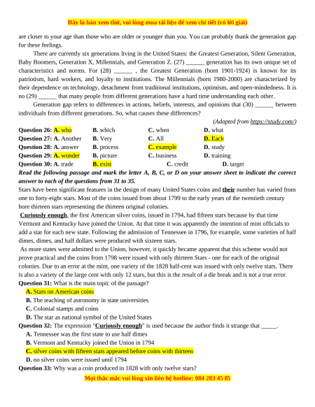 (Adapted from https://study.com/) Question 26: A. who B. which C. when D. what Question 27: A. Another B. Very C. All D. Each Question 28: A. answer B. process C. example D. study Question 29: A. wonder B. picture C. business D. training Question 30: A. trade B. exist C. credit D. target