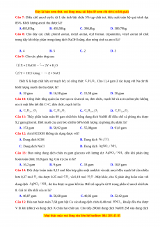 Câu 7: Điều chế ancol etylic từ 1 tấn tinh bột chứa 5% tạp chất trơ, hiệu suất toàn bộ quá trình dạt
