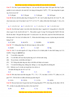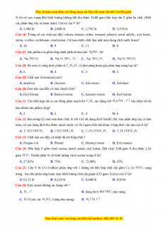 . Phần trăm khối lượng của este có phản ứng lơn hơn khối lượng X là? A. 47,104% B. 40,107% C. 38,208% D. 58,893% Câu 30:
