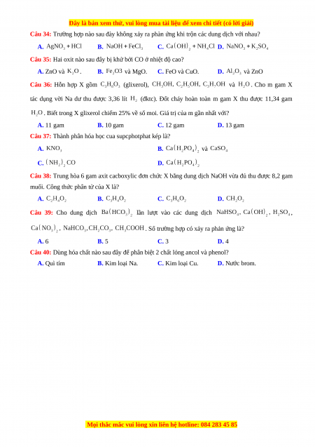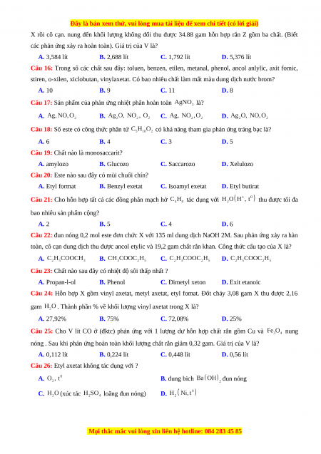 Câu 17: Sản phẩm của phàn ứng nhiệt phân hoàn toàn là? A. B. C. D.