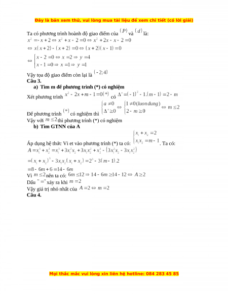 vừa tìm được, tìm tọa độ giao điểm còn lại của và Câu 3. (2,0 điểm) Cho phương trình bậc hai với là tham số