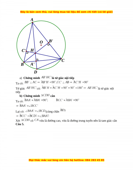 có ba góc đều nhọn và nội tiếp trong đường tròn Vẽ các đường cao cắt nhau tại