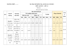 Tổng số lệnh hỏi STT Tự luận % chương kiến thức Nhiều lựa chọn Đúng - sai điểm Biết Hiểu VD Biết Hiểu VD Biết Hiểu VD Biết Hiểu VD Một số vấn Chủ đề 1. đề chung về 3 1 1 1 1 2 4 2 3 22,5% Cách mạng