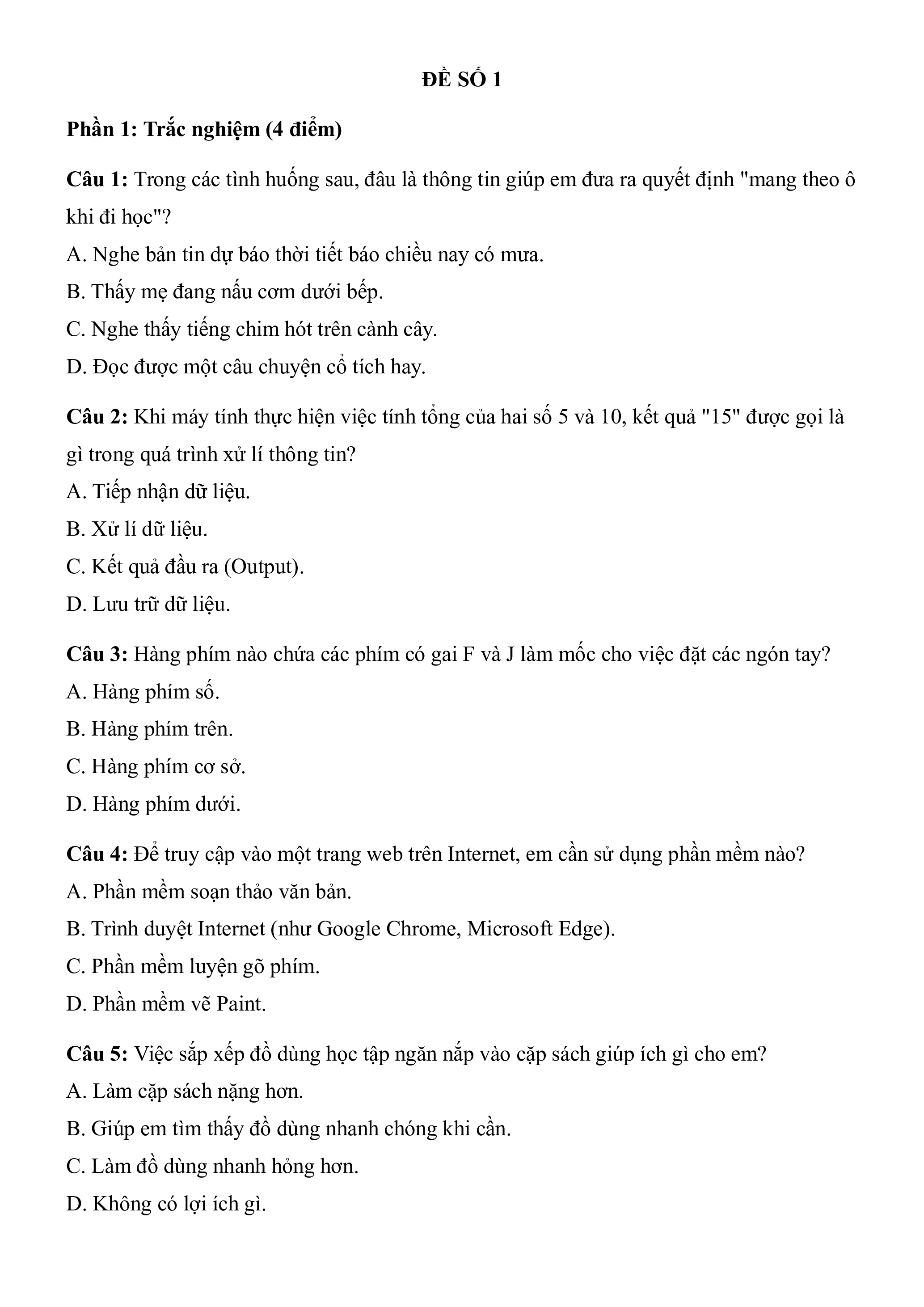 Bộ 7 đề thi cuối kì 1 Tin học lớp 3 Kết nối tri thức có đáp án