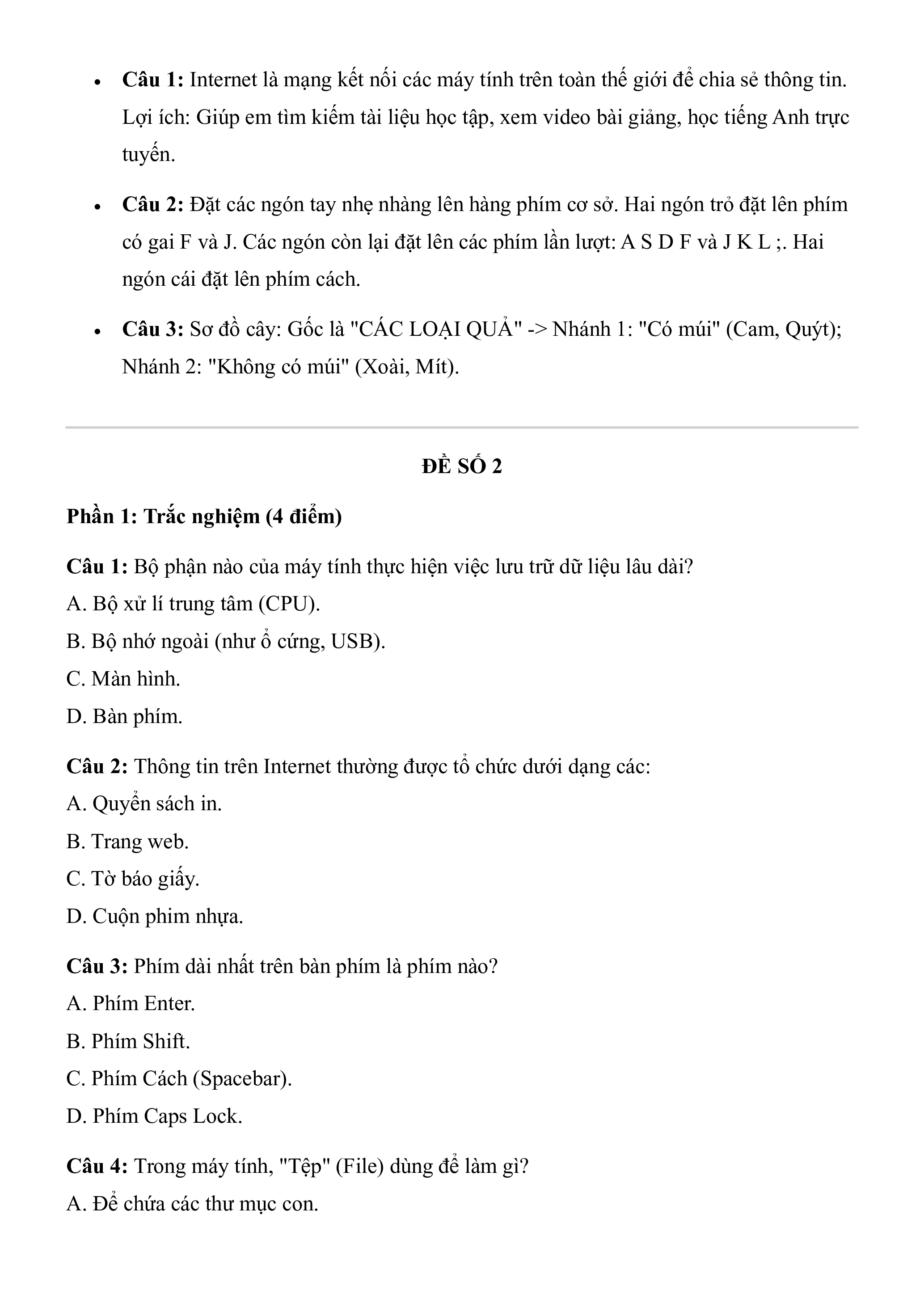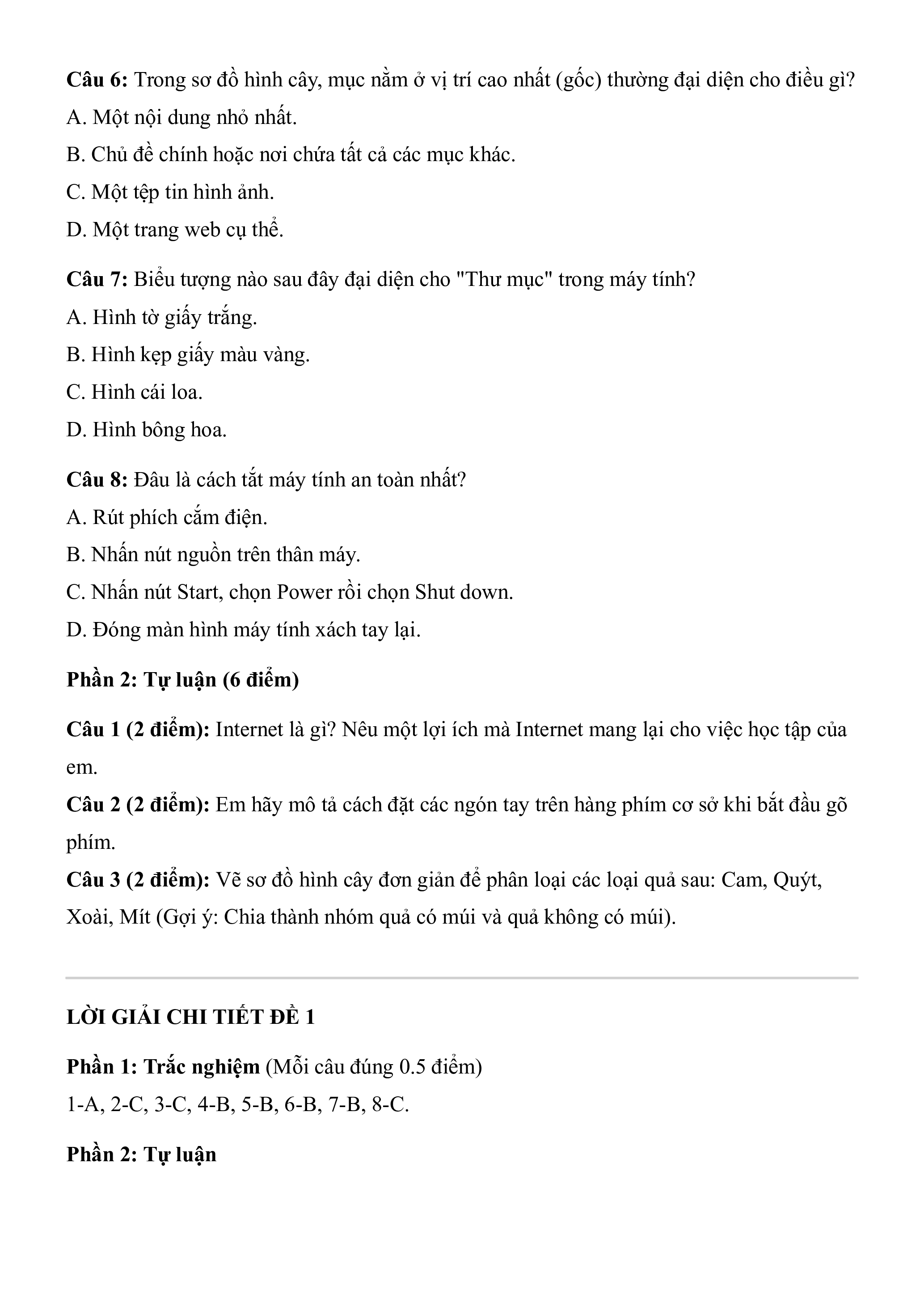 - Tailieugiaovien.com.vn giới thiệu bộ 7 đề thi cuối kì 1 Tin học lớp 3 Kết nối tri thức mới nhất năm 2023-2024 nhằm giúp Giáo viên có thêm tài liệu tham khảo ra đề thi Tin học lớp 3.