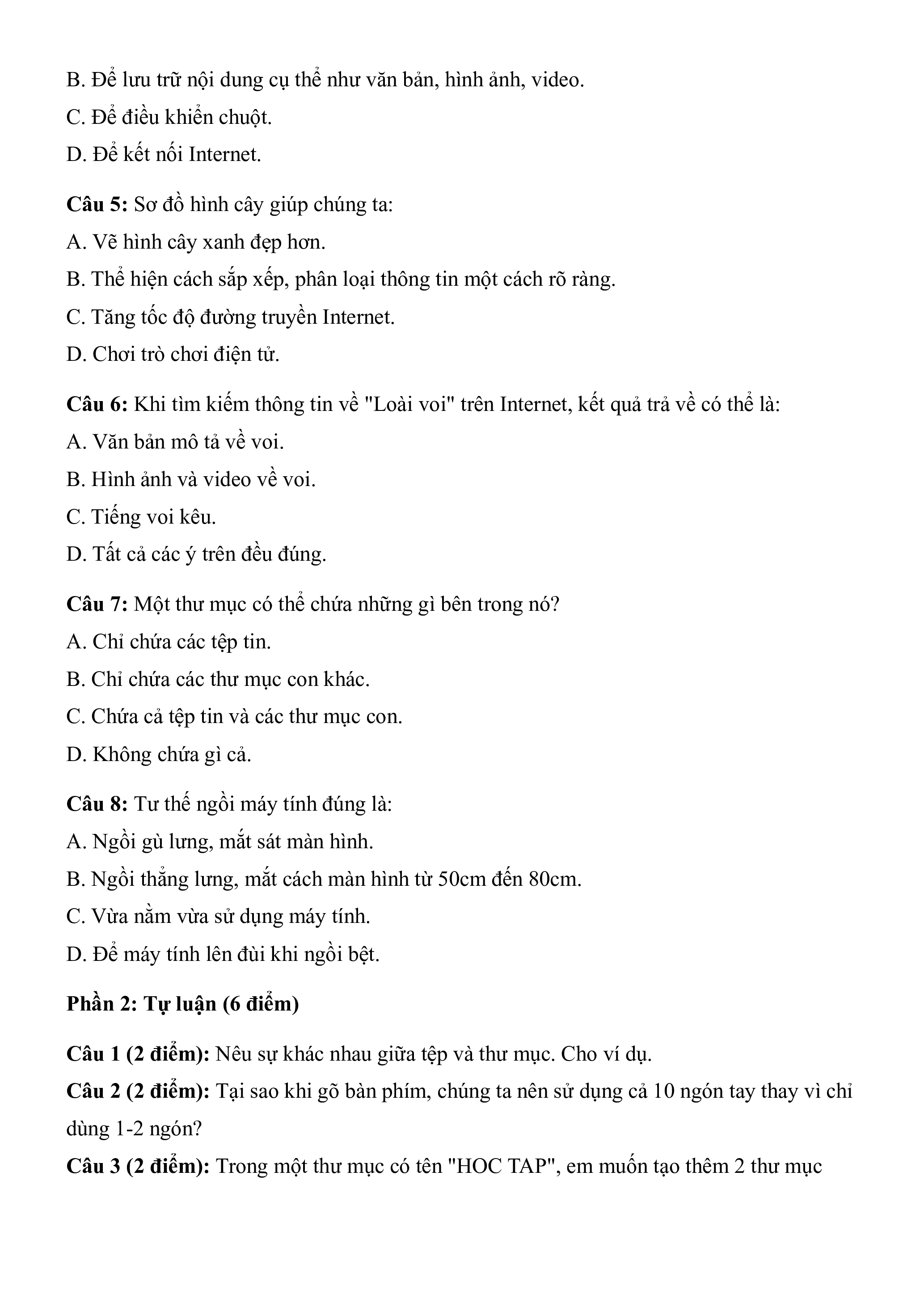 Câu 2: Thông tin trên Internet thường được tổ chức dưới dạng các: A. Quyển sách in. B. Trang web. C. Tờ báo giấy. D. Cuộn phim nhựa.