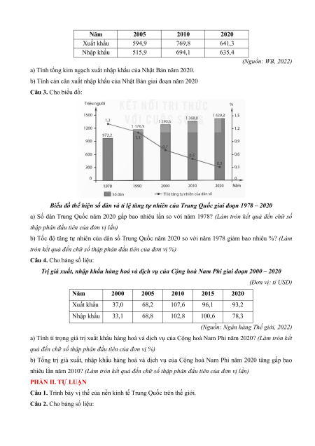 b) Tổng tri giá xuất, nhập khẩu hang hoá va dich vụ của Công hoa Nam Phi năm 2020 tăng gấp bao