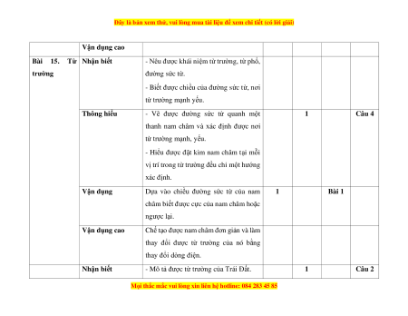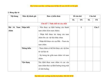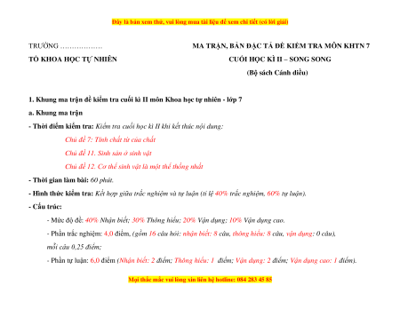 1. Khung ma trận đề kiểm tra cuối kì II môn Khoa học tự nhiên - lớp 7 a. Khung ma trận