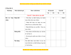 MỨC ĐỘ ĐÁNH GIÁ Tổng số ý/ câu Tổng Nhận biết Thông hiểu Vận dụng Vận dụng cao % Tự Trắc Tự Trắc Tự Trắc Tự Trắc Tự Trắc điểm luận nghiệm luận nghiệm luận nghiệm luận