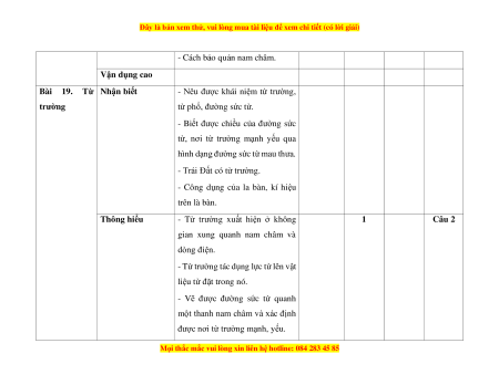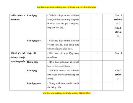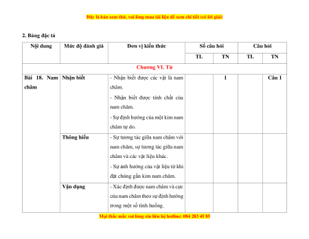 1. Khung ma trận đề kiểm tra cuối kì II môn Khoa học tự nhiên - lớp 7 a. Khung ma trận