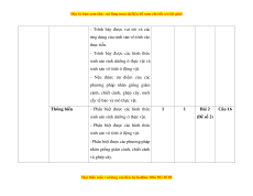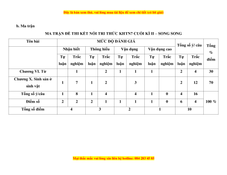 MỨC ĐỘ ĐÁNH GIÁ Tổng số ý/ câu Tổng Nhận biết Thông hiểu Vận dụng Vận dụng cao % Tự Trắc Tự Trắc Tự Trắc Tự Trắc Tự Trắc điểm luận nghiệm luận nghiệm luận nghiệm luận