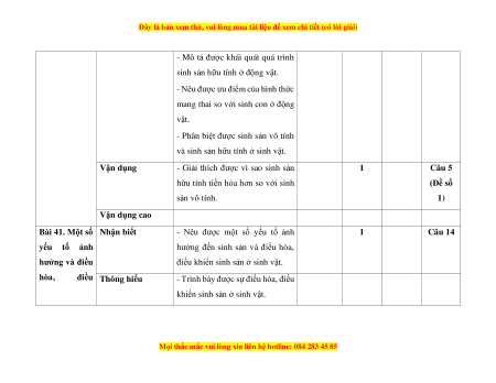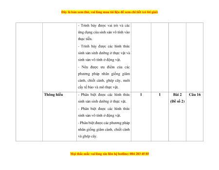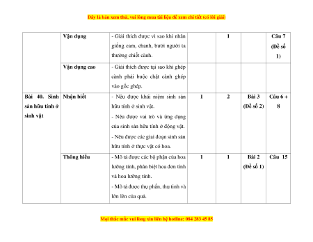 Chương X. Sinh sản ở 1 7 1 2 3 2 12 70 sinh vật Tổng số ý/câu 1 8 1 4 4 1 0 4 16 Điểm số 2 2 2 1 1 1 1 0 6 4 100 % Tổng số điểm 4 3 2 1 10