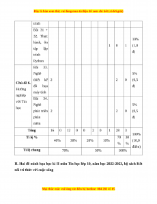Chủ đề 6. đồ họa đ) Hướng máy tính nghiệp Bài 34. với Tin Nghề 5% học phát triển 2 2 0 (0,5 phần đ) mềm Tổng 16 0 12 0 0 2 0 1 28 3 100% Tỉ lệ % 70 30 40% 30% 20% 10% (10,0 % % điểm) Tỉ lệ chung 70% 30% 100%