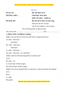 II. Hai đề minh họa học kì II môn Tin học lớp 10, năm học 2022-2023, bộ sách Kết