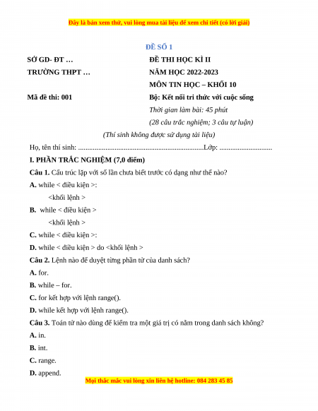Bộ 7 đề thi cuối kì 2 Tin học 10 Kết nối tri thức có đáp án