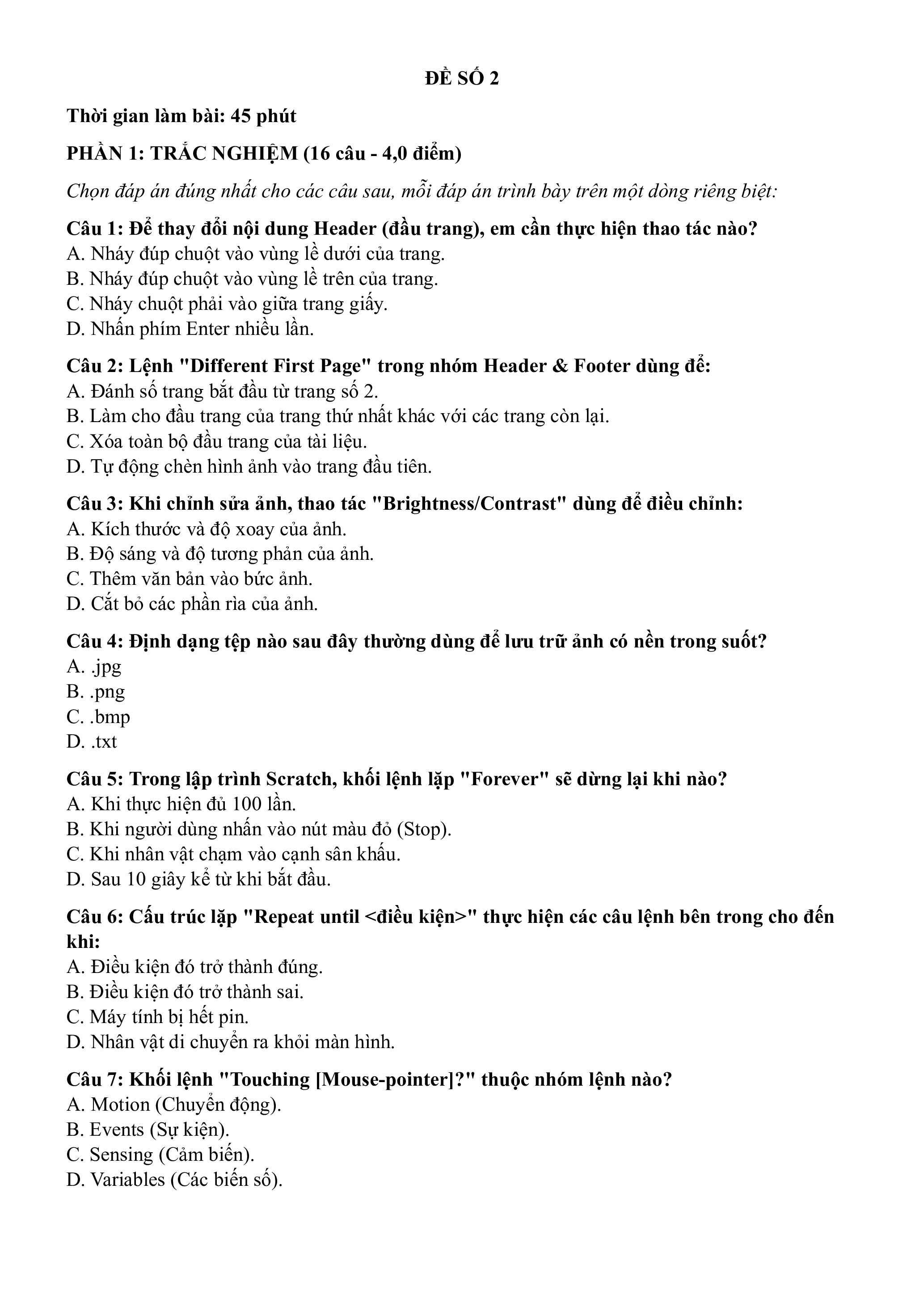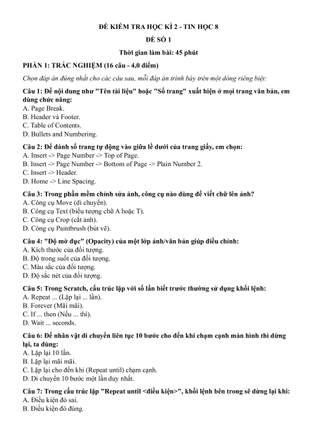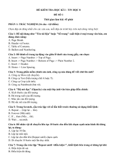 ĐỀ KIỂM TRA HỌC KÌ 2 - TIN HỌC 8 ĐỀ SỐ 1