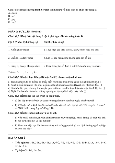 Câu 4 (1,5 điểm): Hướng nghiệp và xử lý ảnh.