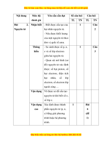 học và đọc được tên của 20 nguyên tố đầu tiên. Thông - Phân biệt được các 1 Bài hiểu nguyên tử nào thuộc 1 cùng một nguyên tố hoá học trong số các nguyên tử được cung cấp thông tin. - Phân biệt được kí