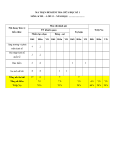 MÔN: KTPL – LỚP 12 – NĂM HỌC: ...........................