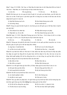 Câu 10: Ngày 11/11/2011 Hiệp định Thương mại tự do Việt Nam – Chi Lê được ký kết và có hiệu