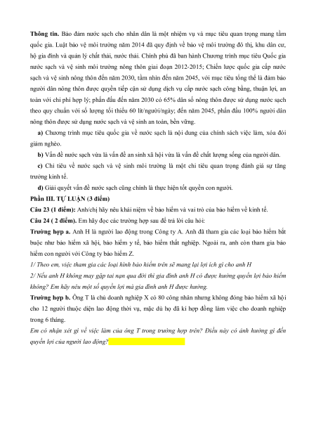 Câu 20: Ở nước ta hiện nay, chính sách nào dưới đây là nội dung cơ bản của hệ thống an sinh xã hội?