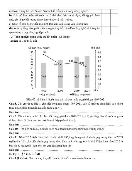 Câu 8. Căn cứ vào tư liệu 1, cho biết trong giai đoạn 1999-2021, dân số nước ta tăng thêm bao nhiêu