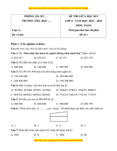 LỚP 4 - NĂM HỌC 2023 – 2024 MÔN: TOÁN Lớp: 4...