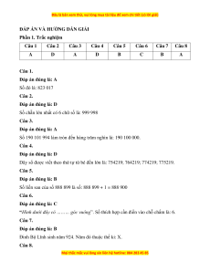 Câu 1. Số “Tám trăm hai mươi ba nghìn không trăm mười bảy” được viết là: A. 823 017 B. 832 017 C. 82 317 D. 823 170
