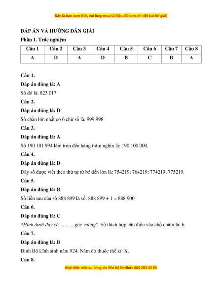 Câu 5. Số liền sau của số 888 899 là số: A. 888 898 B. 888 900 C. 900 000 D. 888 799
