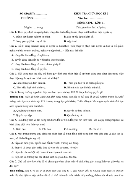 Năm học : ……………. MÔN: KTPL - LỚP: 11 Đề gồm …. trang