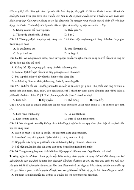 Câu 20. Trong trường hợp sau, bà M đã thực hiện quyền khiếu nại của công dân như thế nào?