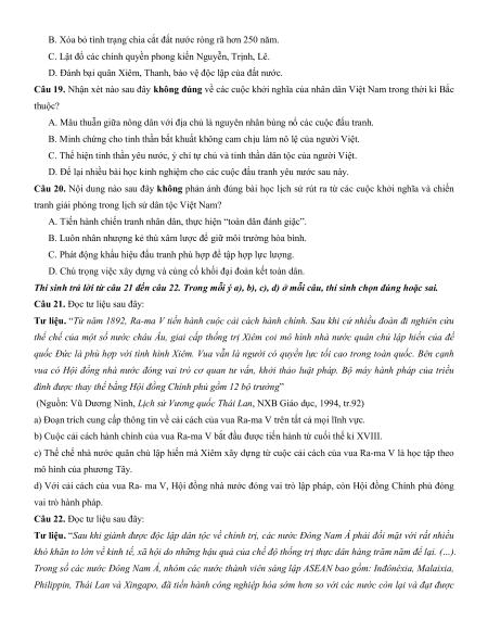 sử Việt Nam (từ thế kỉ III TCN đến cuối thế kỉ XIX) Tổng số câu hỏi 16 0 4 2 1 Tổng số điểm 5,0 2,0 3,0 Tỉ lệ (%) 50% 20% 30%