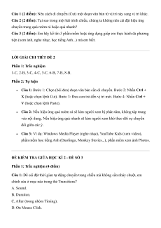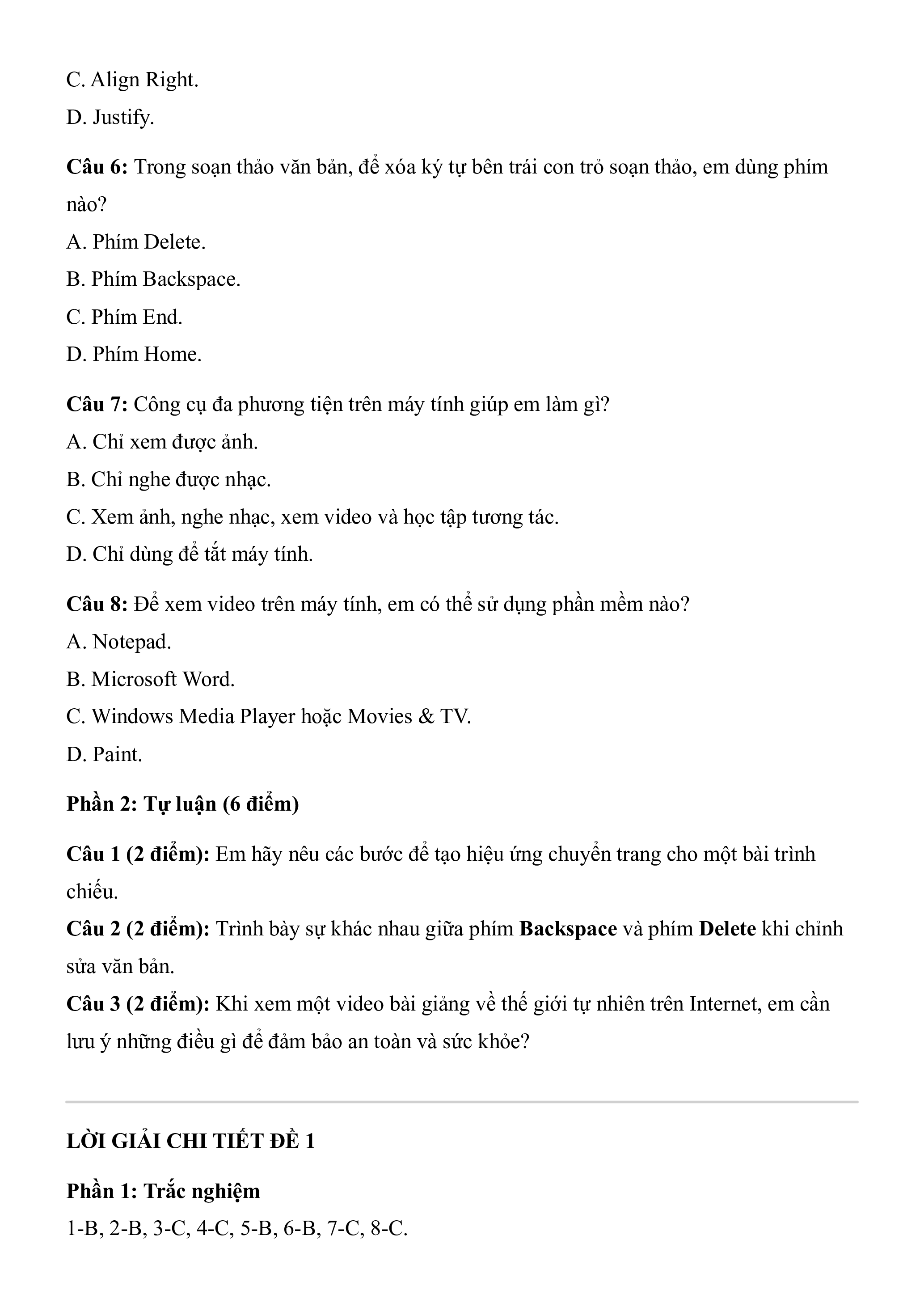 1-B, 2-B, 3-C, 4-C, 5-B, 6-B, 7-C, 8-C. Phần 2: Tự luận