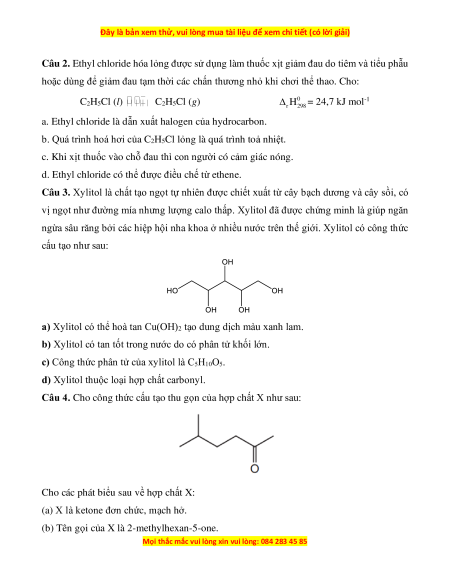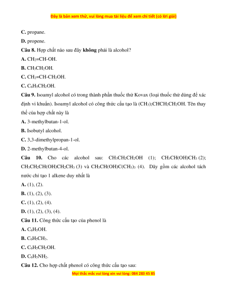 2 Dẫn xuất halogen, Tổng 4,25 điểm. Gồm: alcohol, phenol