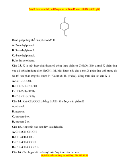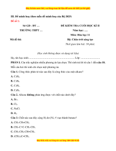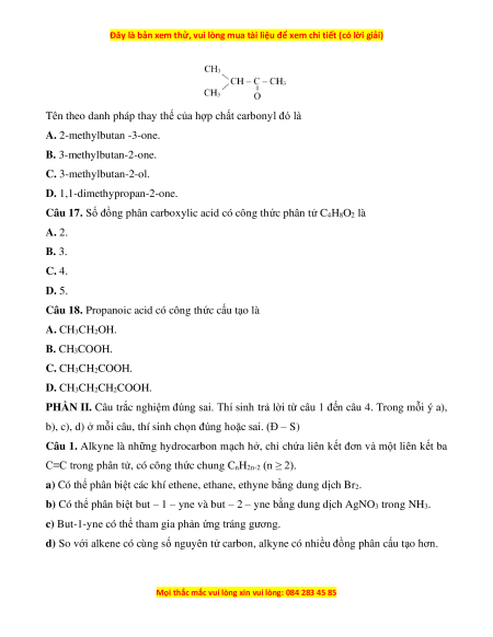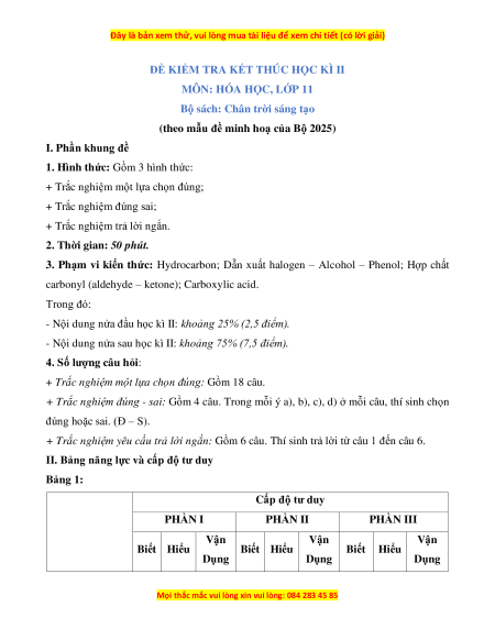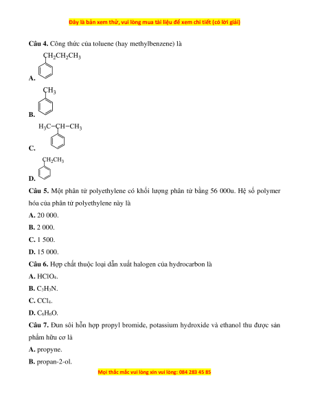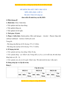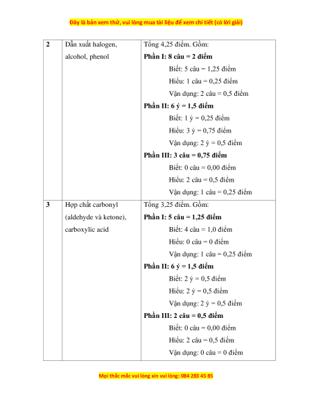 3. Phạm vi kiến thức: Hydrocarbon; Dẫn xuất halogen – Alcohol – Phenol; Hợp chất