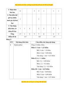 II. Bảng năng lực và cấp độ tư duy Bảng 1: Cấp độ tư duy PHẦN I PHẦN II PHẦN III Vận Vận Vận Biết Hiểu Biết Hiểu Biết Hiểu Dụng Dụng Dụng