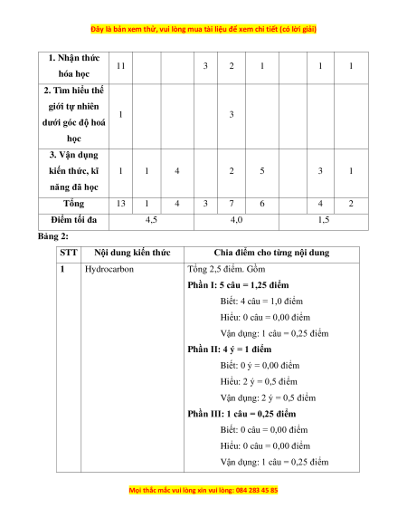 dưới góc độ hoá học 3. Vận dụng kiến thức, kĩ 1 1 4 2 5 3 1 năng đã học Tổng 13 1 4 3 7 6 4 2 Điểm tối đa 4,5 4,0 1,5 Bảng 2: STT
