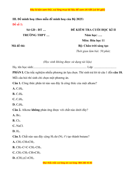 (theo mẫu đề minh hoạ của Bộ 2025) I. Phần khung đề