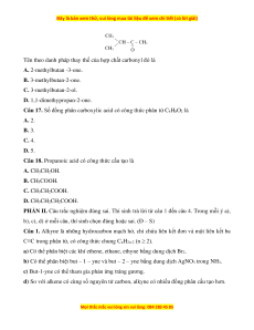 Vận dụng: 1 câu = 0,25 điểm 3 Hợp chất carbonyl Tổng 3,25 điểm. Gồm: (aldehyde và ketone),