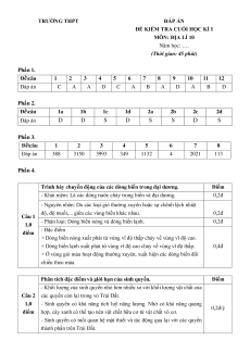 (Thời gian: 45 phút) Phần 1. Đề\câu 1 2 3 4 5 6 7 8 9 10 11 12 Đáp án C A A D C A B A D A B D Phần 2. Đề\câu 1a 1b 1c 1d 2a 2b 2c 2d Đáp án D D S D S S D S Phần 3. Đề\câu 1 2 3 4 5 6 7 8 Đáp án 388 3150 3993 349 1132 4 2021 113 Phần 4.