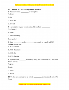 - Minh: No, we won’t. A. Will – able to B. Will – be able to C. Will – be D. Will – be able