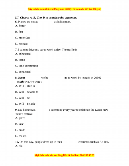 Chúng tôi đảm bảo đủ số lượng đề đã cam kết hoặc có thể nhiều hơn, tất cả có BẢN WORD, LỜI GIẢI CHI TIẾT và tải về dễ dàng.