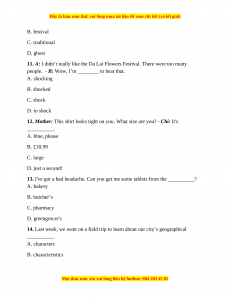 11. A: I didn’t really like the Da Lat Flowers Festival. There were too many