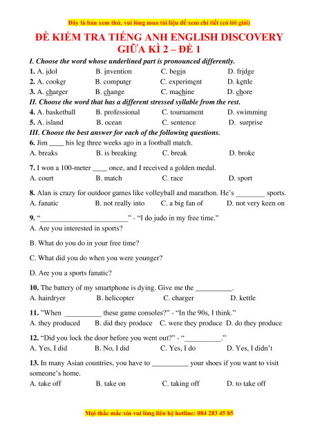 ĐỀ KIỂM TRA TIẾNG ANH ENGLISH DISCOVERY