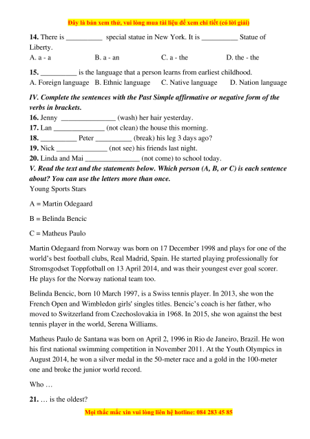 14. There is __________ special statue in New York. It is __________ Statue of Liberty.