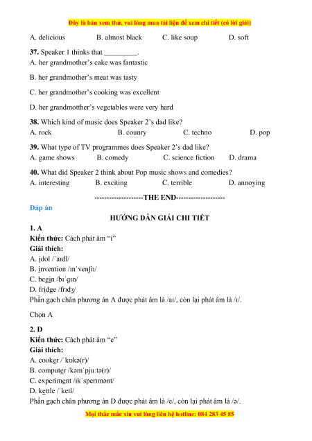 HƯỚNG DẪN GIẢI CHI TIẾT 1. A
