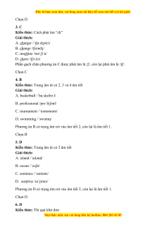 Phần gạch chân phương án A được phát âm là /aɪ/, còn lại phát âm là /ɪ/. Chọn A 2. D