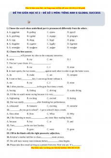 ĐỀ THI GIỮA HỌC KÌ 2 – ĐỀ SỐ 1 MÔN: TIẾNG ANH 6 GLOBAL SUCCESS