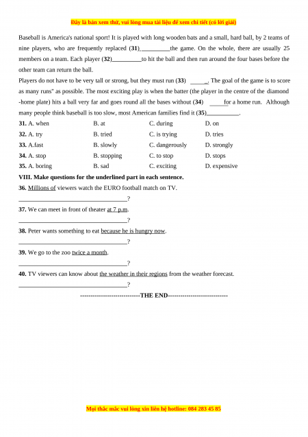 - Đáp án: How many viewers watch the EURO football match on TV?