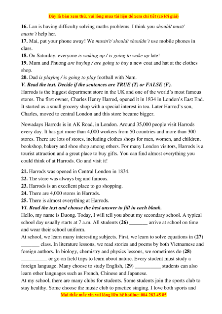 16. Lan is having difficulty solving maths problems. I think you should/ must/ mustn’t help her.